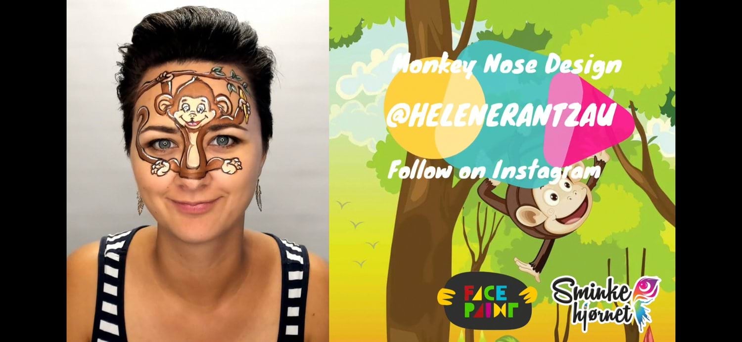 Monkey nose design er et oplagt valg, når der skal males ansigtsmaling i højt tempo. Det er et enkelt design med stor effekt, som både børn og voksne genkender med det samme. Tutorialen er en del af den gratis videoserie produceret af facepaint.com og er samlet her for at gøre det nemt at finde inspiration og bruge videoen som reference.